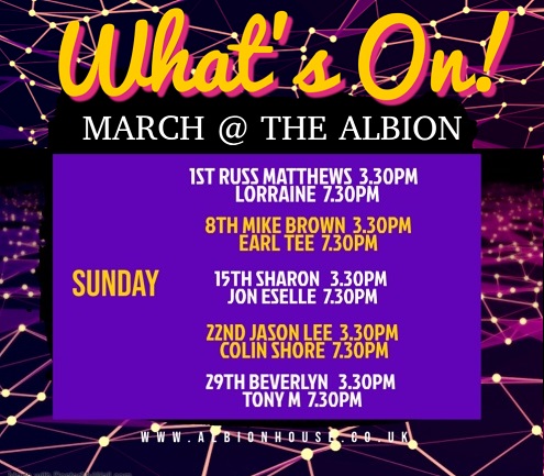There is entertainment every Sunday, Non-members £2 (non members must be signed in by a member).