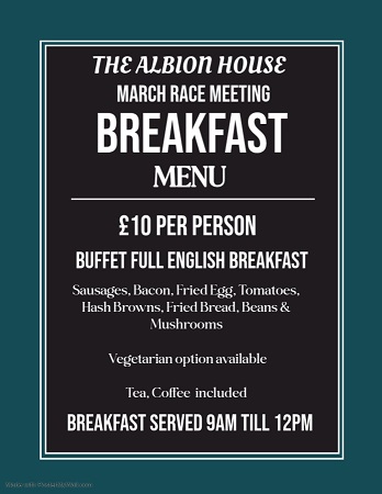 Hot meals are served from the 5 star kitchen till 2.30pm.